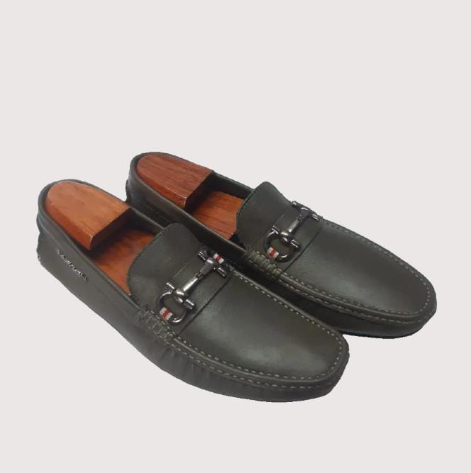Introducing the Alfredo TM Metal in Pebble Green - a stylish and comfortable leather shoe with a metal buckle. Crafted with expert precision, this shoe guarantees both style and comfort. Its metal buckle adds a touch of sophistication and ensures a secure fit. Elevate your outfit with this must-have footwear.